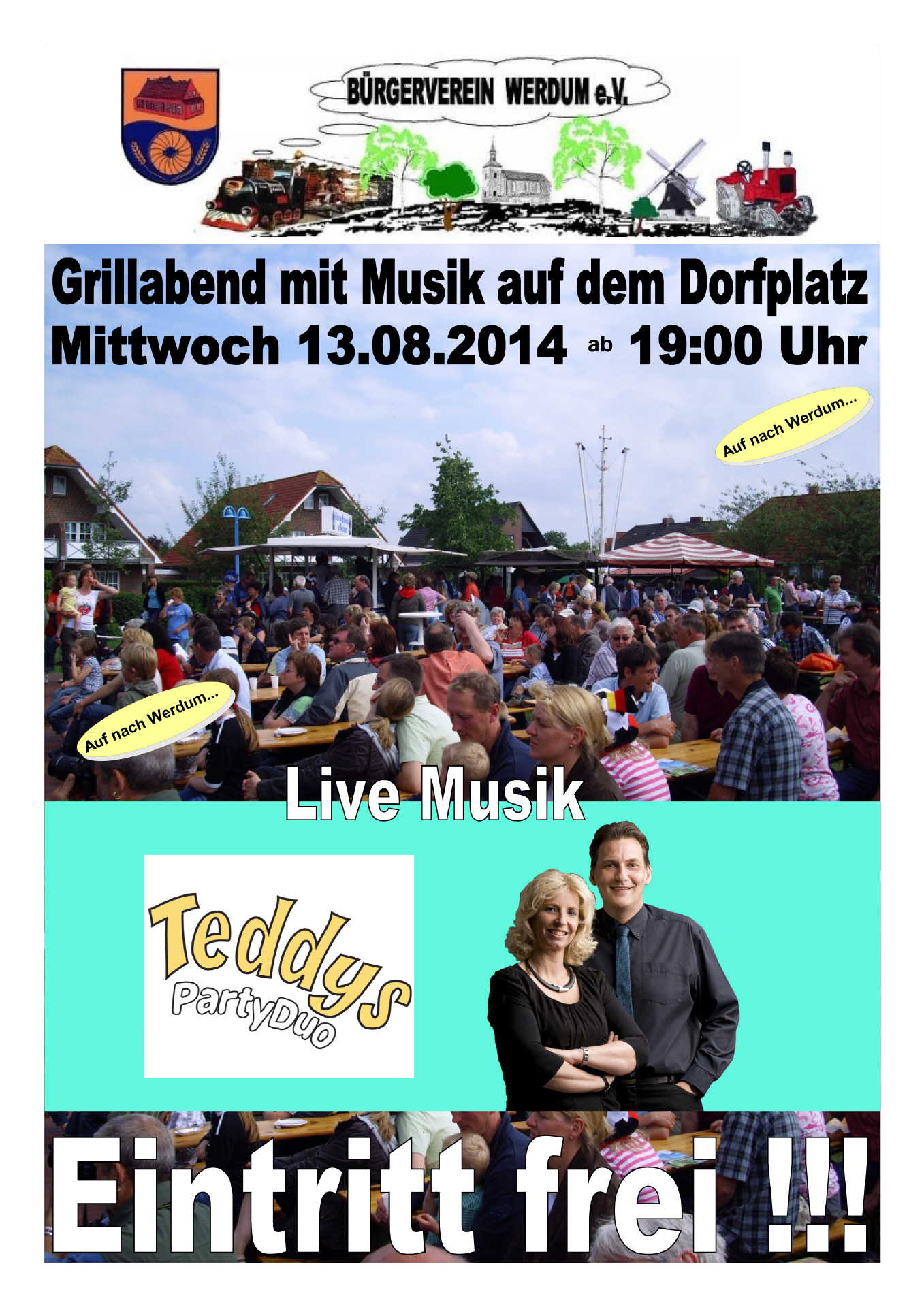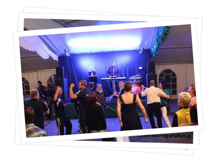 Der Donnerstagabend vor dem letzten Wochendende im Juli ist bei uns zu einem seit Jahren immer wieder gern gespielten Termin geworden: Ab 19.00 Uhr ist das Partyduo auf dem Weinfest in Norden zu sehen und zu hören. Es war dieses Mal, zumindest an diesem Abend, noch besser besucht als in den Vorjahren und die Stimmung war prächtig - trotz des ab 22.30 Uhr einsetzenden Regens hat sich kaum ein Gast auf den Heimweg gemacht, es wurde einfach im Regen gefeiert und mit Einbruch der Dunkelheit auf der Straße getanzt. Wir bedanken uns für die vielen positiven Reaktionen und Anfragen und das Interesse an unserer Musik.Wir kommen im nächsen Jahr gerne wieder und zwar am 24.07.2014 ab 19.00 Uhr.